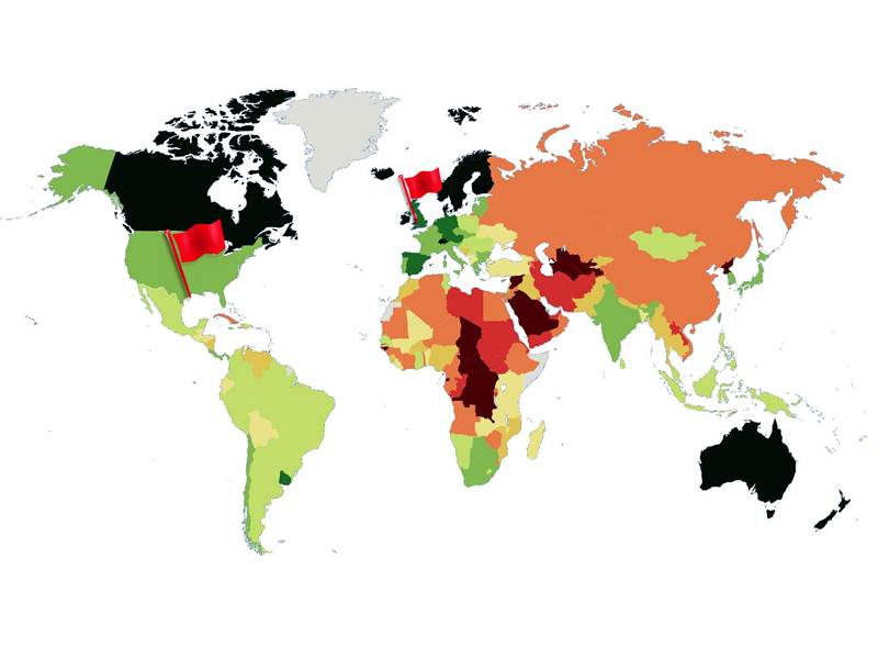 | No. of countries | % of countries | % of world population | |