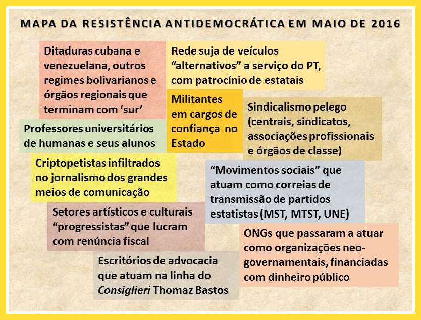 É novidade que altos funcionários governamentais recém demitidos e parlamentares petistas e de partidos aliados, no pleno exercício dos seus mandatos, expressem claramente a orientação às suas bases de que o novo governo não deverá contar com nenhuma colaboração e que, pelo contrário, deverá ser boicotado independentemente do conteúdo (mesmo acertado e correto) de suas ordens, medidas e determinações.