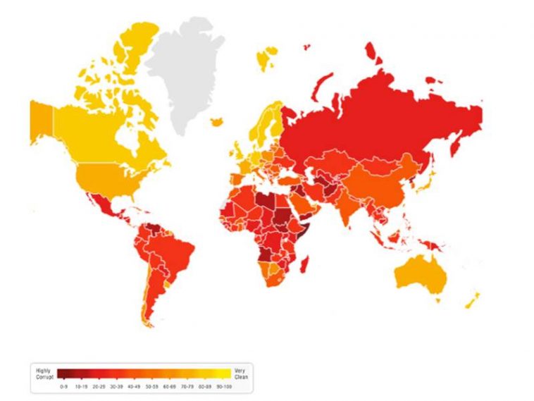 De acordo com a organização, a maioria dos países fez pouco ou nenhum progresso para acabar com o problema no último ano. O índice usa um escala de 0 a 100 – sendo 0 o mais corrupto e 100 representaria um país sem corrupção. Mais de dois terços dos países tiveram nota abaixo de 50, sendo que a média mundial foi de 43.