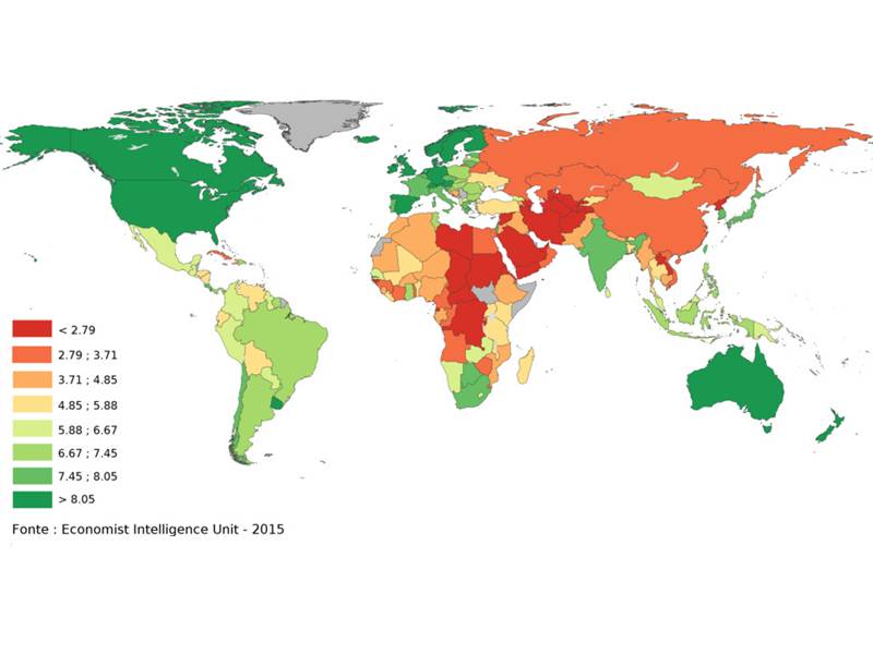 O grande problema desses estudos que geram rankings da democracia (e correlatos) é o seguinte: a democracia realmente existente na atualidade é a democracia reinventada pelos modernos como democracia representativa. O problema é que ela é coetânea à construção da forma Estado-nação. E como o Estado (qualquer forma de Estado) é um fruto da guerra (no caso do Estado-nação, da paz de Westfália), a democracia acabou servindo como modo de administração política de uma estrutura geneticamente guerreira, para tentar mitigar o Leviatã com a fórmula do Estado democrático de direito. Então qual é realmente o problema? O problema é que a democracia não deveria valer apenas para isso, para domesticar Estados. A democracia é um processo de desconstituição de autocracia onde quer que ela se manifeste (nas famílias, escolas, igrejas, corporações sindicais, organizações sociais, quartéis, universidades, empresas – além, é claro, de órgãos estatais). Ademais, não é só o Estado que é ou não é democrático em alguma medida e sim também as demais estruturas sociais. Ou medimos tudo isso, ou não medimos o que realmente importa: em que medida comportamentos que refratam a regulação de conflitos de modo mais autocrático do que democrático se reproduzem na sociedade.