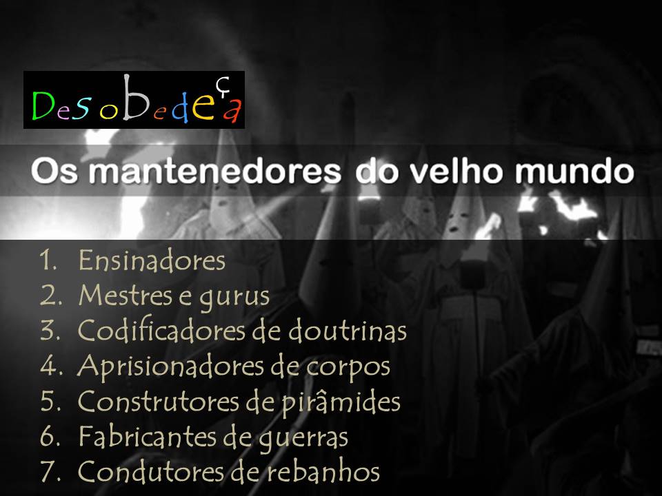 Ora, a todos que querem obrigá-lo a obedecer. Em especial aos agentes de um velho mundo hierárquico e autocrático cujos alicerces já estão apodrecendo, mas que continua, resilientemente, a nos assombrar. Dentre tais agentes, que são muitos, merecem ser destacados aqui: os ensinadores, os codificadores de doutrinas, os aprisionadores de corpos, os construtores de pirâmides, os fabricantes de guerras e os condutores de rebanhos.