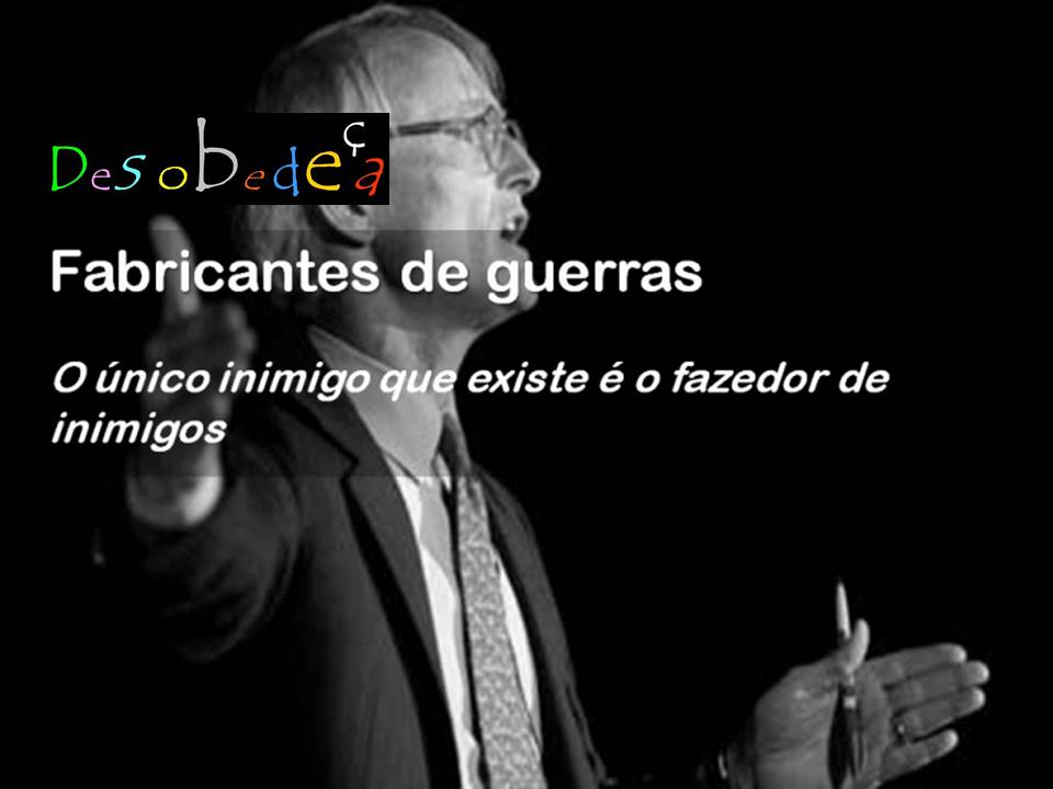DESOBEDEÇA aos fabricantes de guerras, que são, stricto sensu, os chefes militares e, lato sensu, os que pervertem a política como arte da guerra e os que se entregam à competição adversarial tendo como objetivo destruir seus concorrentes. São, todos, predadores. O predador é uma máquina de converter o semelhante em inimigo. Mas é preciso considerar que não existem inimigos naturais ou permanentes: toda inimizade é circunstancial e pode ser desconstituída pela aceitação do outro no próprio espaço de vida, pelo acolhimento, pelo diálogo, pela cooperação. Assim, o (único) inimigo que existe mesmo é o fazedor de inimigos.
