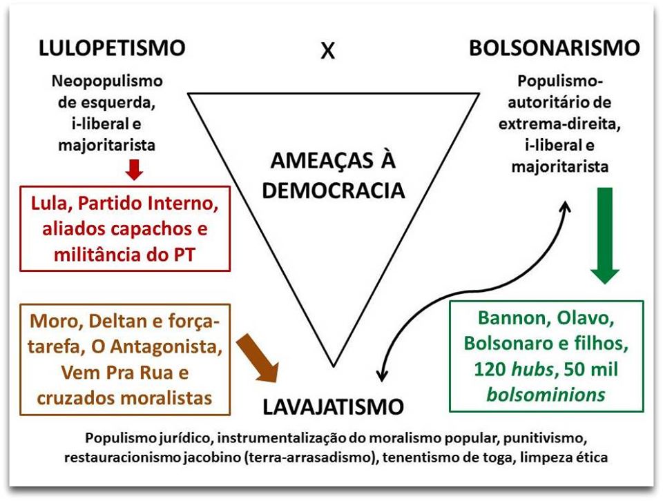 De qualquer modo, conquanto o lavajatismo tivesse criado condições para o surgimento do bolsonarismo (notadamente para a eleição de Jair Bolsonaro), agora devemos considerar essas duas forças políticas – ambas antidemocráticas – como sujeitos distintos. A elas junta-se – no mesmo campo autocrático – o neopopulismo lulopetista.