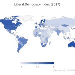 As cores são de acordo com o tipo de regime e o tamanho das bolhas de acordo com o Índice de Liberdades Civis 2017 da The Economist Intelligence Unit. Democracy Index: de 0,00 a 10,00 (0 é o menos democrático e 10 o mais democrático). Corruption Perception Index: de 0 a 100 (0 é o mais corrupto e 100 o menos corrupto).