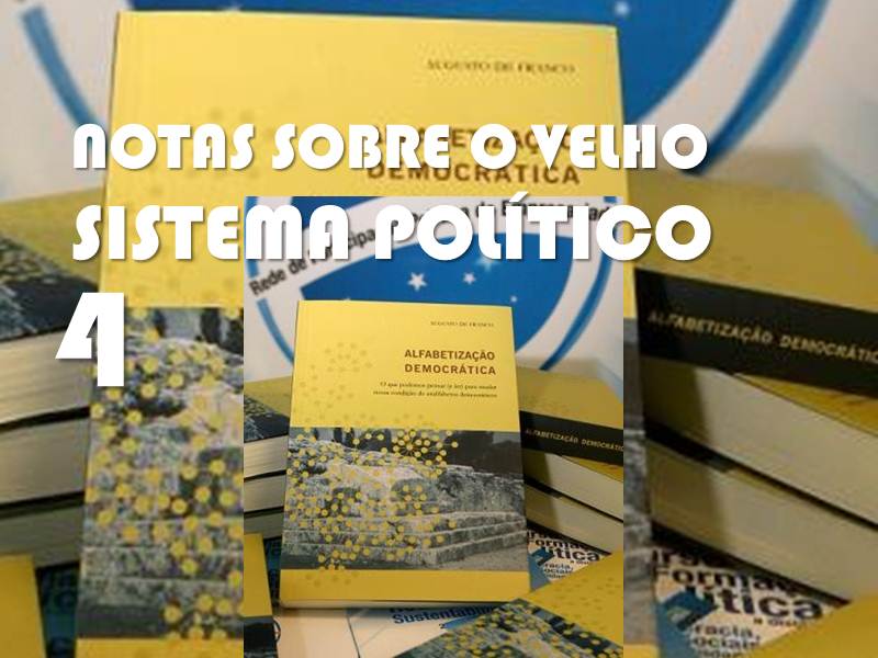 Estas notas foram extraídas de um livro que publiquei, em 2007, para um programa de formação política que foi frequentado por centenas de pessoas no Paraná. Cf. FRANCO, Augusto. Alfabetização democrática. Curitiba: FIEP – Rede de Participação Política do Empresariado, 2007 (disponível apenas em papel, mas parece que a edição está esgotada). Para ler a primeira parte clique aqui. Para ler a segunda parte clique aqui. Para ler a terceira parte clique aqui.