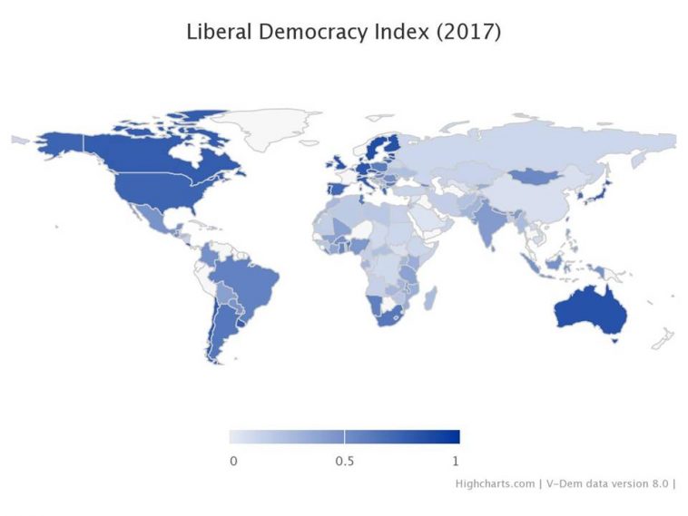 As classificações que estabelecem fronteiras são equívocas porquanto arbitrárias. Sobretudo porque existem países que estão nas fronteiras. E porque há graus de liberalismo-político em todos os regimes (até na Coréia do Norte deve haver algum grau, ainda que próximo de zero) e não apenas nas cerca de 40 democracias liberais consideradas pelo V-Dem.