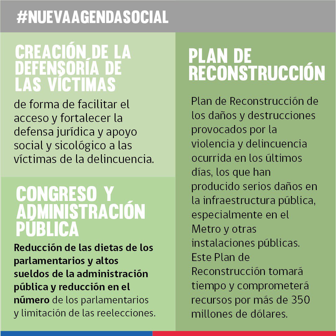 Hemos escuchado fuerte y clara la voz de la gente expresando pacíficamente sus problemas, sus dolores, sus sueños y sus esperanzas de una vida mejor. Hoy quiero compartir con todos mis compatriotas las principales medidas y componentes q impulsaremos con esta #NuevaAgendaSocial