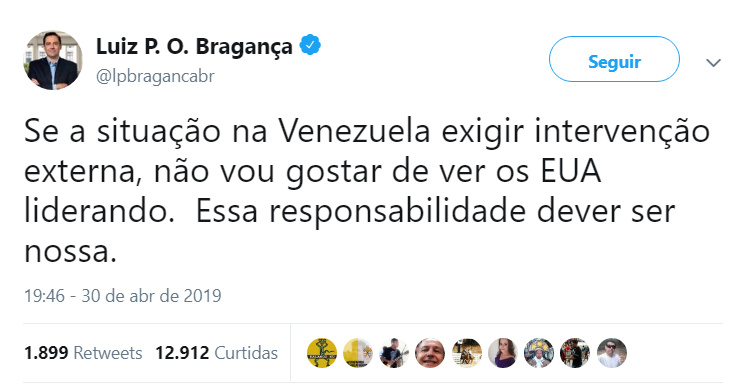 Aliás, já começou. O príncipe olavista Luiz Philippe de Orleans e Bragança postou anteontem (30/04/2019) a noite no seu Twitter: