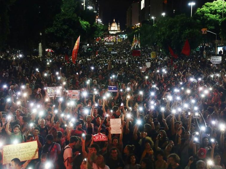 Foi a primeira grande onda de manifestações durante o governo do presidente Jair Bolsonaro, pouco mais de quatro meses após ele ter tomado posse”.