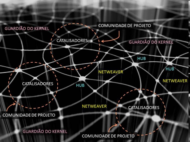 (6) Guardião do Kernel é uma função emergente em redes mais distribuídas do que centralizadas. O conceito vem do Linux e ficou conhecido de um público mais amplo de leitores quando apareceram as primeiras reportagens sobre Marcelo Tosatti, o “guardião do kernel”, ou o “garotão de 19 anos que cuida do coração do Linux” (como anunciou a revista Info-Exame). Na verdade, não é uma função eleita, surgida em um ambiente participativo e sim uma “funcionalidade” que surge com a fenomenologia da interação observada nas redes (sobretudo nas redes distribuídas ou mais distribuídas do que centralizadas). O Guardião do Kernel não é o líder que lidera tudo (na base da monoliderança) nem, muito menos, o chefe ou o coordenador de um movimento ou entidade centralizada. Não é um cargo hierárquico, que obrigaria a seu detentor a consultar ou pedir permissão a um superior para fazer qualquer coisa não prevista nas rotinas aceitas (admitidas pela maioria) ou estabelecidas institucionalmente por qualquer processo autocrático ou democrático-participativo. Abstraindo o caso concreto de Tosatti (que nem se aplica plenamente à nova função tratada aqui), o Guardião do Kernel é todo aquele que atua como tal para preservar a integridade do coração (propósito atribuível) de um sistema. Não é indicado por ninguém, conquanto possa ser removido por uma comunidade que não aceite seu comportamento. Mas, caso isso não ocorra, sua atuação como guardião é assentida pela rede (sem a necessidade de verificação por qualquer processo que gere artificialmente escassez, como a votação, a construção administrada de consenso, o rodízio ou o sorteio). E é uma função móvel (ninguém é guardião para sempre) e não exclusiva (pode haver mais de um guardião simultaneamente e se atuarem em sinergia dificilmente essa duplicidade ou multiplicidade será percebida como um problema). Nenhuma organização que reúna muitas pessoas conseguirá manter seu propósito por muito tempo sem um ou vários guardiães do kernel.
