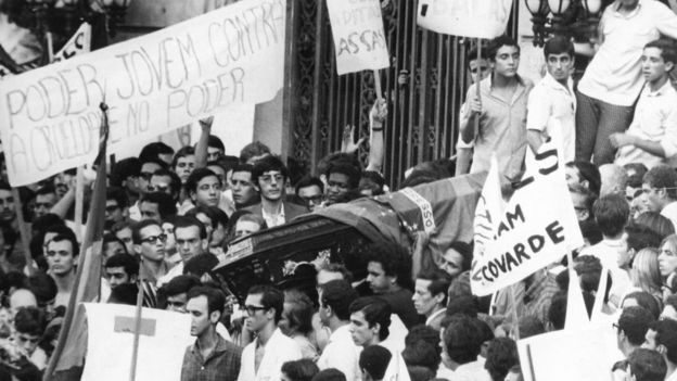 Essa oposição esteva mais atuante a partir de 1967 e em 1968 e alguns acontecimentos marcaram a resistência. Em março de 1968, durante uma manifestação estudantil, a polícia militar invadiu o restaurante Calabouço, no Rio de Janeiro, onde alguns estudantes jantavam, e o jovem estudante Edson Luís foi morto por policiais miltiares.